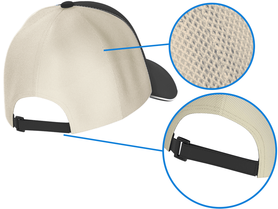 - Reinforced half-seam front panel for uninterrupted branding area