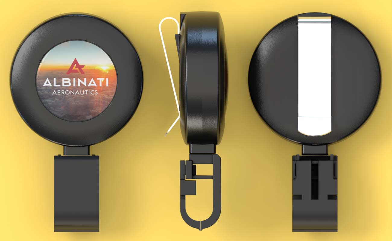 The Retractable Reel features a dedicated branding area on the top, a standard clip at the back and a claw clip attached to the cord - that can easily attach to any card such as a display card or security pass. The cord itself easily extends and retracts as you wish.