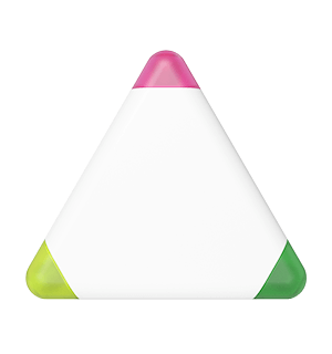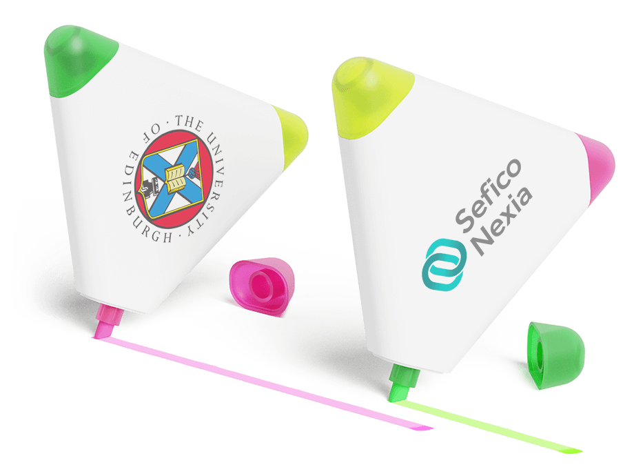 Our Triple highlighter pen boasts 3 different highlighters on one model - yellow, green and pink. The eye-catching triangular shape also makes it an extremely popular giveaway item. We can add your logo, slogan and more to both sides of the Triple - which gives you fantastic brand exposure on a product that'll be kept and used frequently.