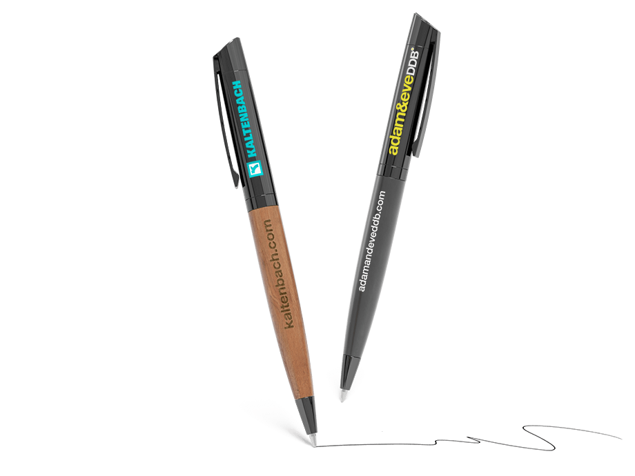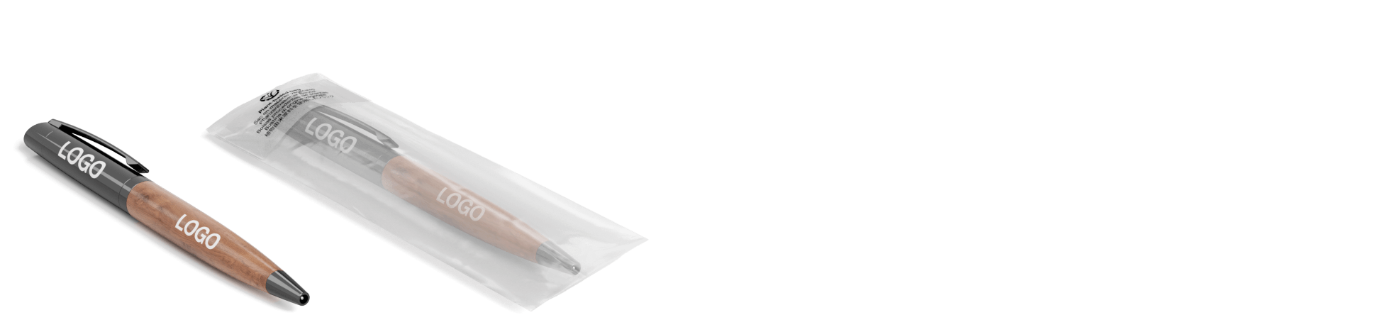 Our Xylo pen is crafted from stainless steel and wood, giving it a stunning finish that's ready to be branded with your logo. The smooth-action rotating top reveals and retracts the ballpoint pen that offers a comfortable and reliable writing experience. The stylish clip at the top of the pen also allows for easy attachment to notebooks and more. Contact us today for more information about our branding process, express delivery times and to request samples.