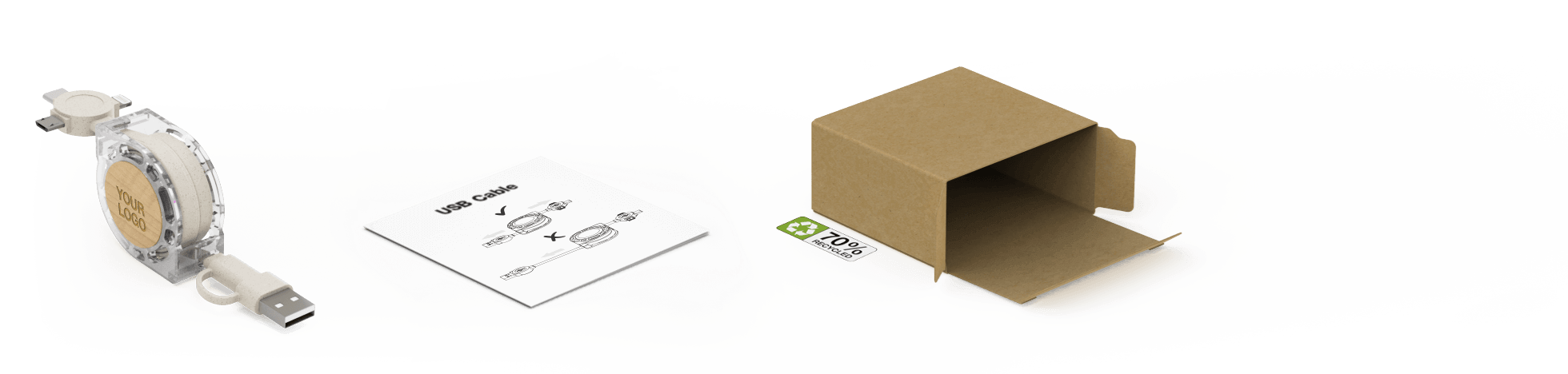The cable is crafted from wheat straw bio-plastic, offering an eco-friendly solution that aligns with your brand's sustainable practices. The printing area is made from FSC-certified wood to continue the sustainability theme. Fill out a Quick Quote today to receive a personalised price list and start customising your Motion Wood hubs!
