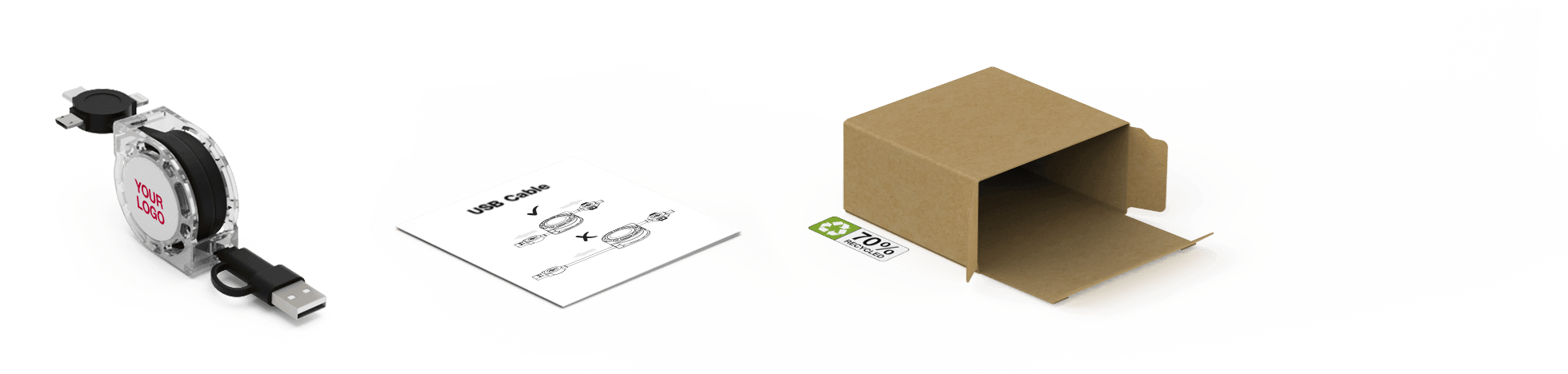 The Motion USB Cable features an enlarged branding area on both sides, ready to be Photo Printed with your image, logo, slogan, event details and more. The Motion supports data transfer and charging capabilities and is compatible with all major devices due to the 4 connector options, including a standard USB connector, Micro-USB, USB-C and a Lightning Adapter. You can seamlessly extend and retract the cables by pulling both cable ends at the same time. For a wooden touch, check out our  model.