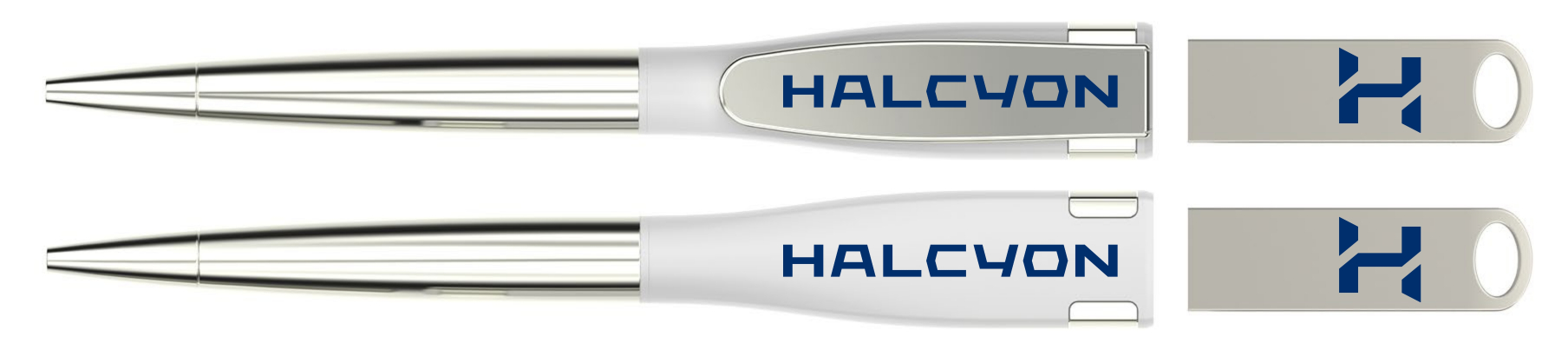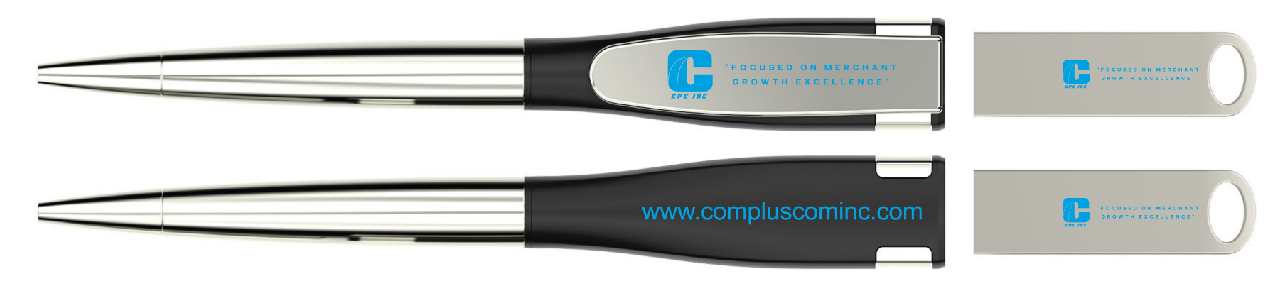 The 4 branding areas are visible on the body of the ballpoint pen and the detachable USB drive to keep your logo visible at all times.