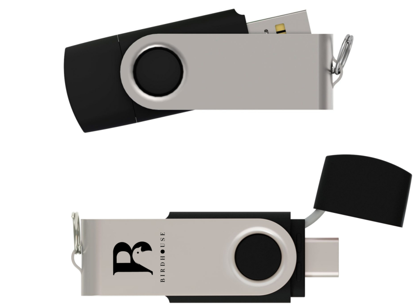 The keyring attachment allows prospective clients to keep their dual USB sticks on hand and prominently displayed for increased brand awareness. You could pair with our